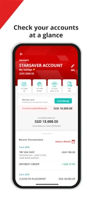Započnite svoje digitalno bankarstvo s neusporedivom sigurnošću i jednostavnošću. Pristupite svojim financijama uz napredne opcije prijave poput biometrije, prepoznavanja lica i digitalnog tokena, osiguravajući da su vaši podaci uvijek zaštićeni. Brzo pregledajte sve svoje račune i obavljajte najčešće transakcije putem intuitivnih prečaca. Sada možete jednostavno upravljati svojim pristupom putem Singpass Face Verification, kreditne/bankomat kartice i PIN-a, što omogućuje registraciju, promjenu lozinke ili otključavanje pristupa bez ikakvih problema.