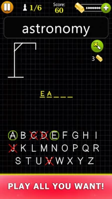 Zakoračite u svijet misterija riječi uz **Hangman - Word Game**, izazov koji testira vaš rječnik i inteligenciju. Svakim slovom koje pogodite, korak ste bliže otkrivanju skrivene riječi. No, oprez je ključan: pogrešni potezi vode vas sve bliže zloslutnim vješalima. Cilj je jednostavan – preživjeti, otkriti riječ i postići najbolji rezultat s najmanje grešaka. Ova igra nije samo zabava; ona je vaša osobna teretana za um, idealna za jačanje vokabulara i proširivanje općeg znanja kroz četiri intrigantne razine težine.