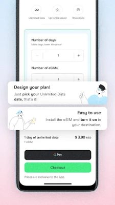 Holafly osigurava brzu i pouzdanu internetsku vezu gdje god vas put odvede. Izaberite između fleksibilnih planova, uključujući neograničene podatke prilagođene duljini vašeg putovanja, i koristite hotspot funkcionalnost za povezivanje svih svojih uređaja. Naše pretplatničke eSIM kartice eliminiraju skrivene troškove, nudeći kristalno jasnu cijenu prije polaska. Kupnja je iznimno jednostavna putem Holafly aplikacije – samo nekoliko klikova kreditnom karticom ili PayPalom, a vaša digitalna kartica stiže na e-mail u trenu. Uparivanje i aktivacija su intuitivni, uz detaljne vodiče, video upute i offline sadržaje unutar aplikacije.