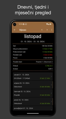 Umorni ste od zamršenog bilježenja radnih sati i vječnog prebrojavanja? iboChron donosi intuitivno i sveobuhvatno rješenje za upravljanje vašim radnim vremenom, namijenjeno svakom profesionalcu. Bilo da ste samostalni poduzetnik, freelancer ili zaposlenik, iboChron olakšava precizno praćenje dolazaka i odlazaka jednostavnim klizačem ili naknadnim unosom detalja, uključujući i pauze. Trenutačno dobivate jasan uvid u svoje odrađene sate, prekovremene sate, dane bolovanja i godišnjeg odmora, kao i ukupnu zaradu. Idealan je alat za provjeru radnih listi, osiguravajući vam potpunu kontrolu nad vašim vremenom i prihodima. Vaši podaci ostaju sigurni i isključivo na vašem uređaju, jamčeći vam potpunu privatnost.