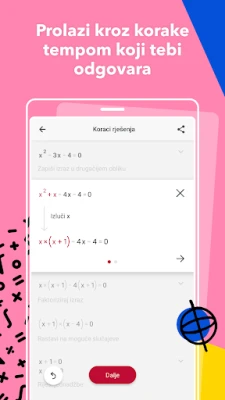 Zamislite svijet u kojem složeni matematički problemi postaju jasni i upravljivi. Photomath je vaš ultimativni pratitelj, pretvarajući izazovne jednadžbe u lako probavljiva rješenja. Jednostavno usmjerite kameru svog uređaja na bilo koji ispisani tekst ili rukom pisani matematički zadatak i promatrajte kako ga Photomath trenutno dešifrira. Osim što pruža odgovore, Photomath pedantno razlaže svaki korak, osvjetljavajući cijeli proces kako biste istinski shvatili temeljne koncepte i pouzdano riješili svaki zadatak.