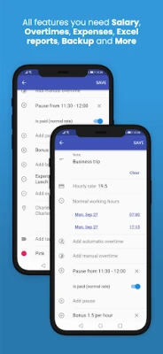 Dizajnirana za maksimalnu fleksibilnost, aplikacija automatski obračunava dnevni i tjedni prekovremeni rad, uz mogućnost definiranja plaćenih ili neplaćenih pauza. Jednostavno dodajte jednokratne bonuse, satne naknade ili razne troškove kako biste osigurali potpunu točnost obračuna. Uz podršku za različite vrste smjena i opciju stvaranja predložaka za ponavljajuće postavke, organizacija vašeg rasporeda nikada nije bila intuitivnija. Koristite oznake, bilješke i vizualno sortiranje po boji za besprijekoran pregled.