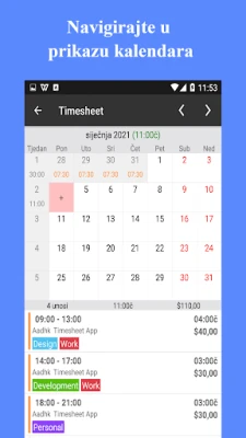 Uz Radni list, dodavanje radnih sati nikada nije bilo jednostavnije – koristite intuitivni mjerač vremena, praktičan widget ili izravno unosom u kalendar. Jasno pregledajte svoju povijest rada unutar vizualnog kalendarskog prikaza i uvijek imajte uvid u to koliko ste radili i zaradili. Aplikacija podržava praćenje više projekata i klijenata istovremeno, automatski izračunavajući dnevni i tjedni prekovremeni rad s opcijama za zaokruživanje vremena na intervale od 3, 5, 6, 10, 15, 30 ili 60 minuta, osiguravajući apsolutnu točnost.