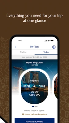 Doživite vrhunsku pogodnost putovanja uz aplikaciju SingaporeAir. Od jednostavne rezervacije letova i upravljanja putovanjem do besprijekornog ukrcaja i šire, ova aplikacija pruža sveobuhvatno i poboljšano iskustvo na svakom koraku vašeg putovanja.
