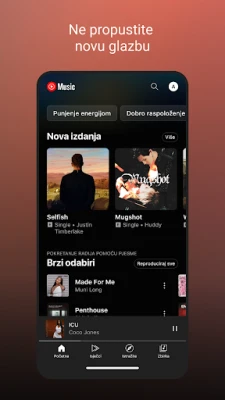 YouTube Music vas povezuje s bogatim svijetom glazbe, nudeći jedinstvene nastupe, obrade i remikseve. Uživajte u tisućama odabranih popisa i personaliziranim miksevima prilagođenim vašem ukusu i aktivnostima. Otkrijte novu glazbu i izrađujte vlastite zbirke s preporukama.